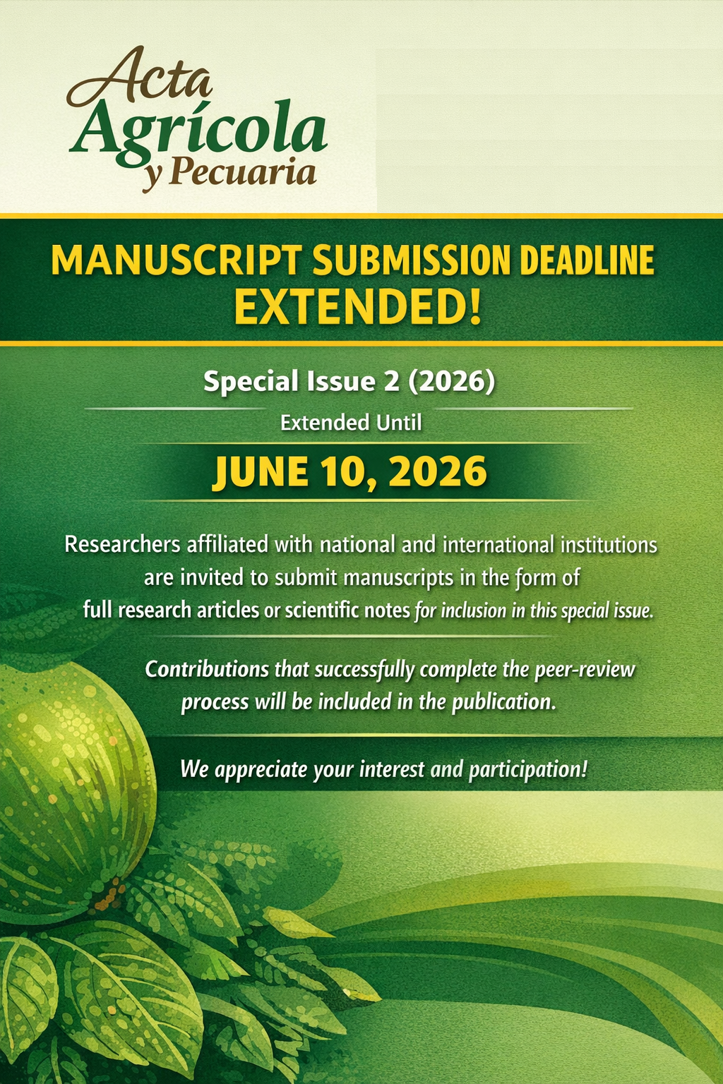 Manuscript submission deadline, extended
